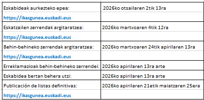 Os informamos que este año el plazo de prematrícula de E.Infantil, E. Primaria y E. Secundaria para el Curso Escolar 2026-27 será del 2 al 13 de febrero de 2026 tal y como ha publicado el Departamento de Educación del Gobierno Vasco en la Orden 15/12/2025